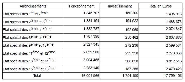 En même temps que le projet de budget de la commune, les États Spéciaux d’Arrondissements – adoptés en équilibre par délibération des Conseils d’Arrondissements – sont également soumis au Conseil Municipal (en vertu de la loi du 31 décembre 1982 et de l’article L.2511-41 du Code Général des Collectivités Territoriales).
