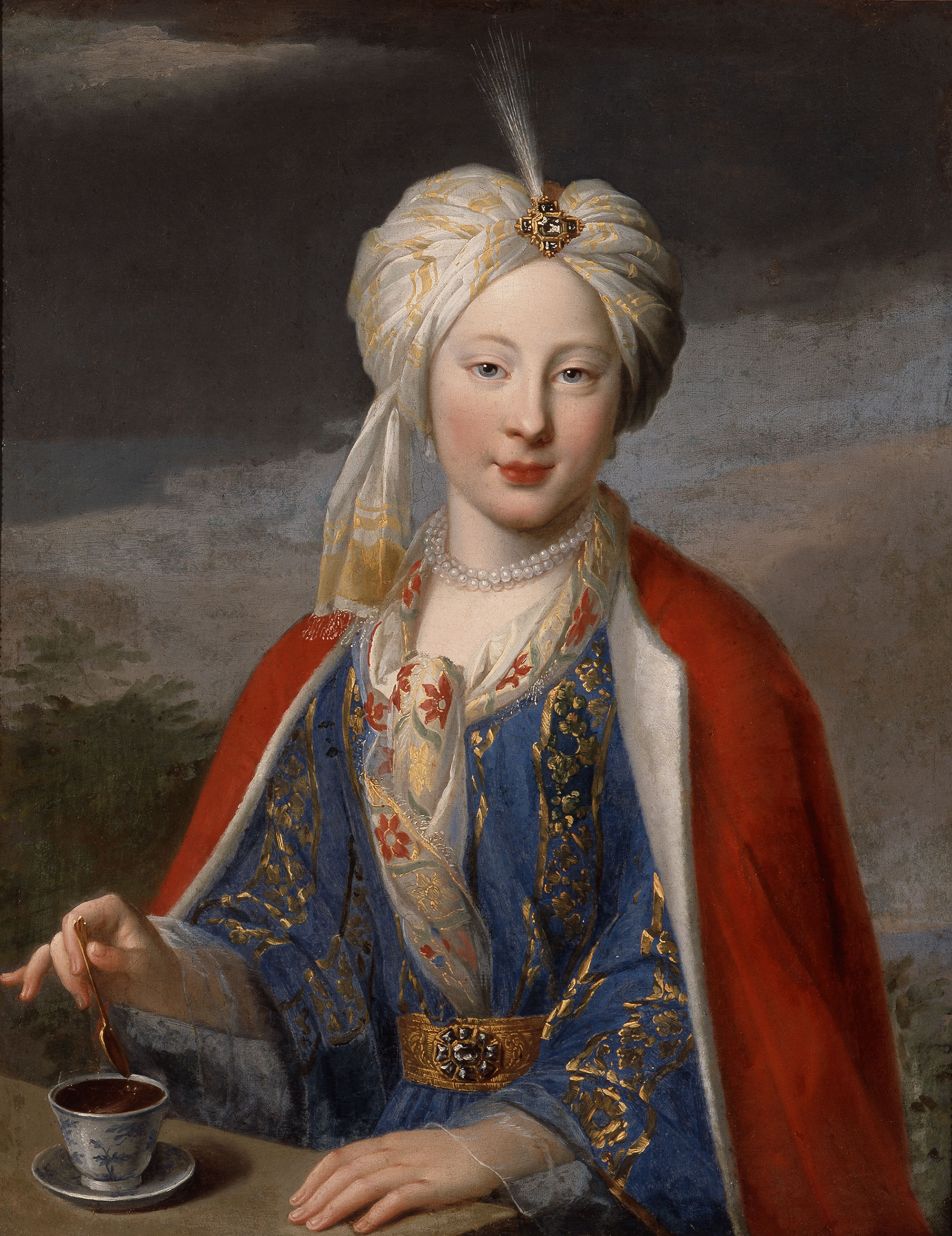 Anonyme, La Buveuse de café, XVIIIe siècle, huile sur toile, Marseille, musée des Beaux-Arts de Marseille, Musée des Beaux-Arts de Marseille © Musées de Marseille / Almodovar-Vialle - Yémen, Fragment d’un bas-relief figurant une déesse tenant des épis de blé, 1er s. - 3e s. n.è., albâtre, Paris, musée du Louvre © Musée du Louvre, dist. GrandPalaisRMN / Raphaël Chipault