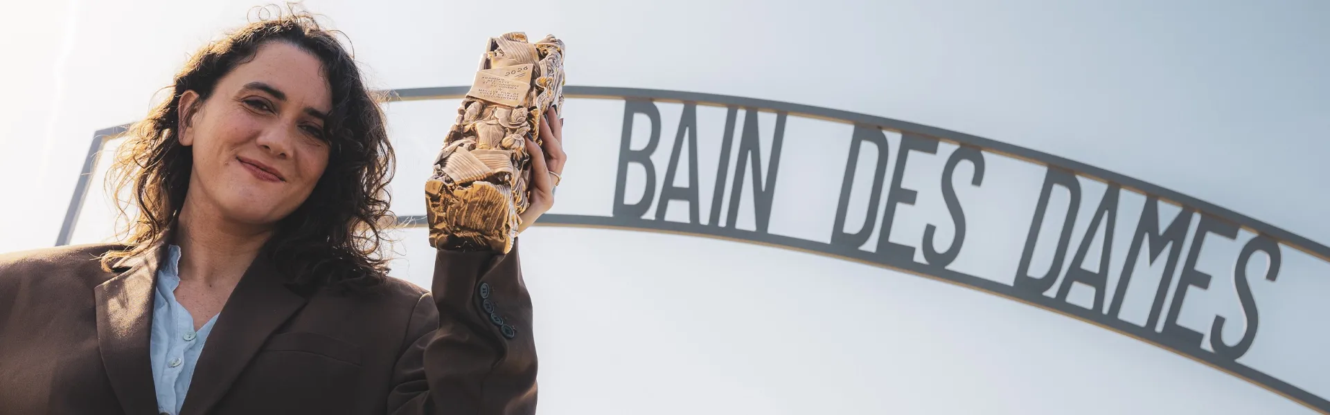 Crédit de la photo d'en-tête : Margaux Fournier, réalisatrice du court métrage Au Bain des Dames, avec son César sur les lieux du tournage © Ryan Layechi - Ville de Marseille