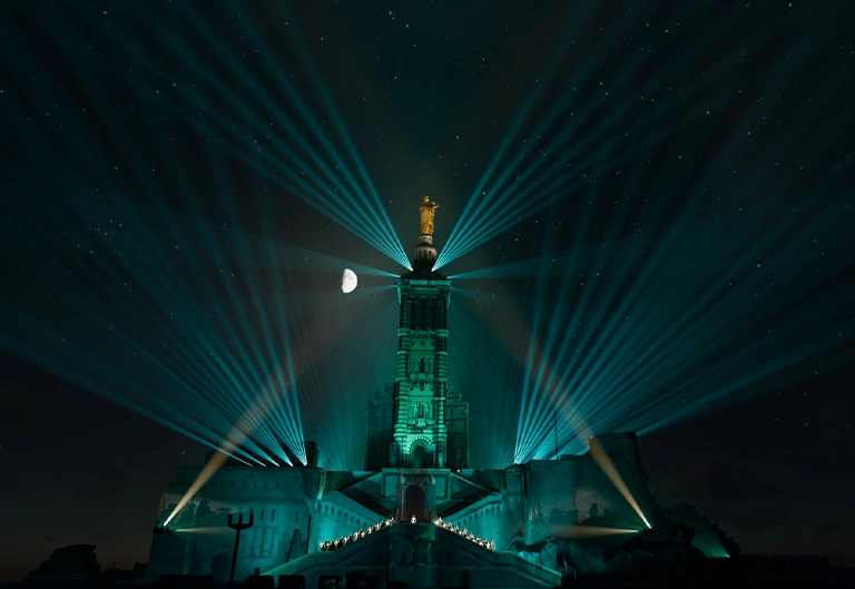 Proposée par le Diocèse de Marseille, cette création artistique et visuelle a été imaginée par le célèbre DJ français, Michaël Canitrot, et ses équipes du Monumental Tour.