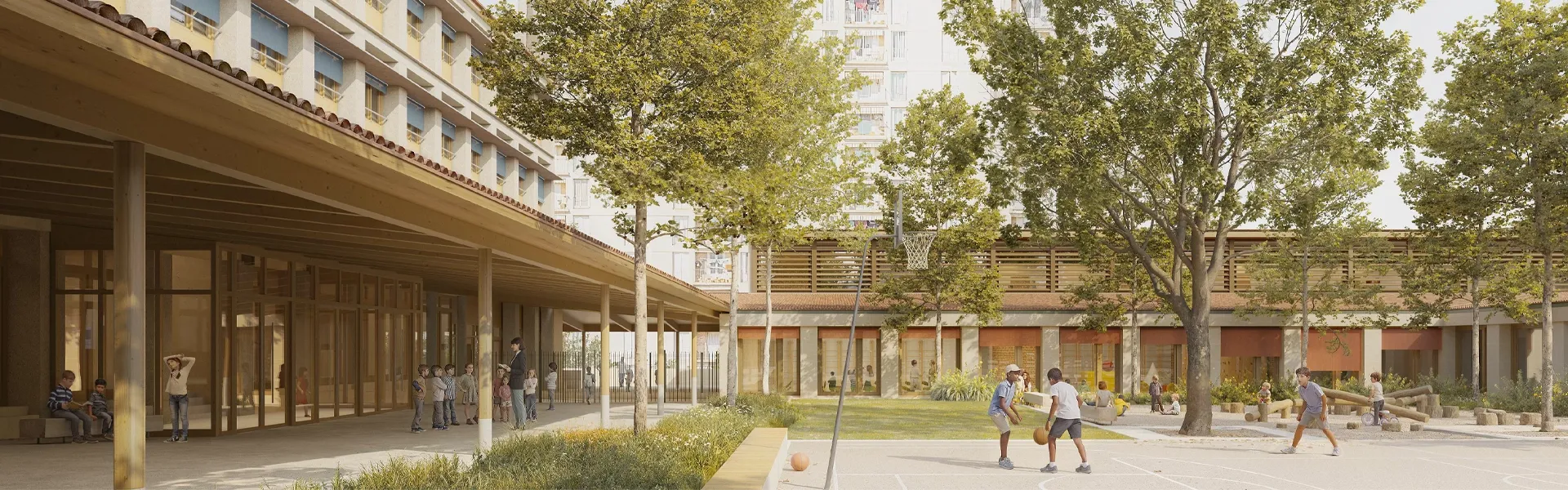 Situé au cœur du quartier, le projet vise à conforter cette centralité en créant des équipements performants et ouverts sur le quartier.