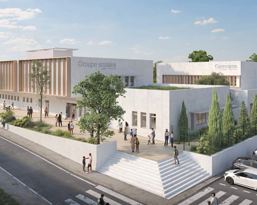 Le projet du groupe scolaire Notre-Dame-Limite Jean Perrin comprend la reconstruction complète des écoles et du gymnase, l’amélioration des performances énergétiques, la requalification des espaces intérieurs, la végétalisation et le réaménagement des cours, ainsi que la mise aux normes réglementaires de l’ensemble du site.