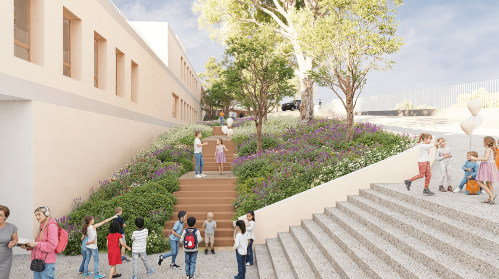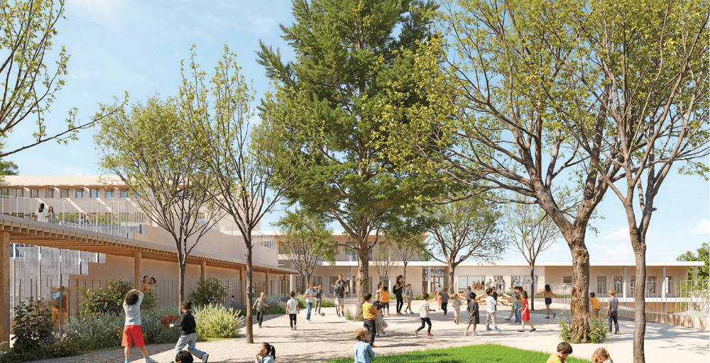 - Cours de récréation repensées, désimperméabilisées et végétalisées