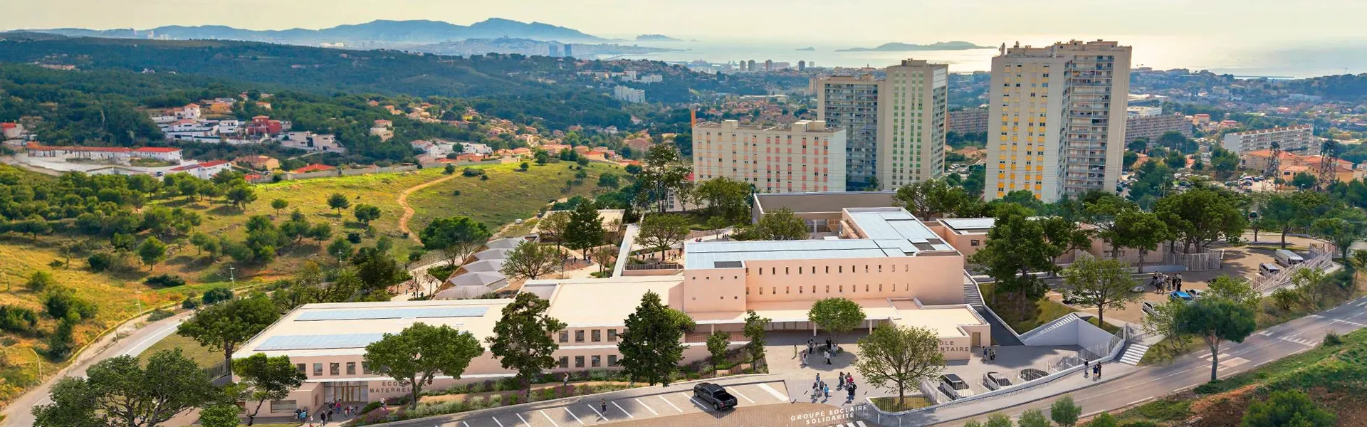 Situé aux portes du massif de l’étoile et en promontoire du quartier de La Solidarité dans le 15e arrondissement de Marseille, le site des écoles Solidarité 1 & 2 regroupe deux écoles maternelles et une école élémentaire.