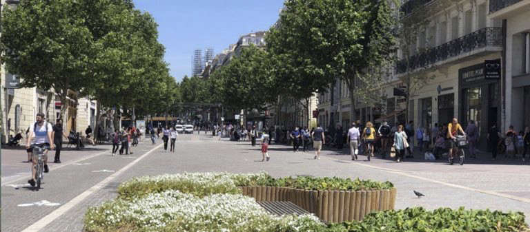 Depuis le 2 décembre 2019, la portion basse de la Canebière a été entièrement piétonnisée et les travaux ont permis la création d’un vaste espace dédié aux piétons et à la déambulation.