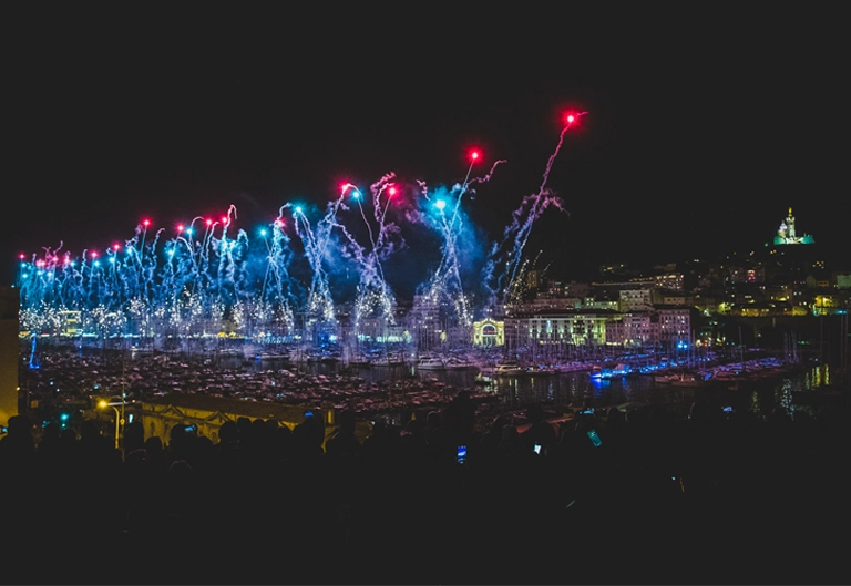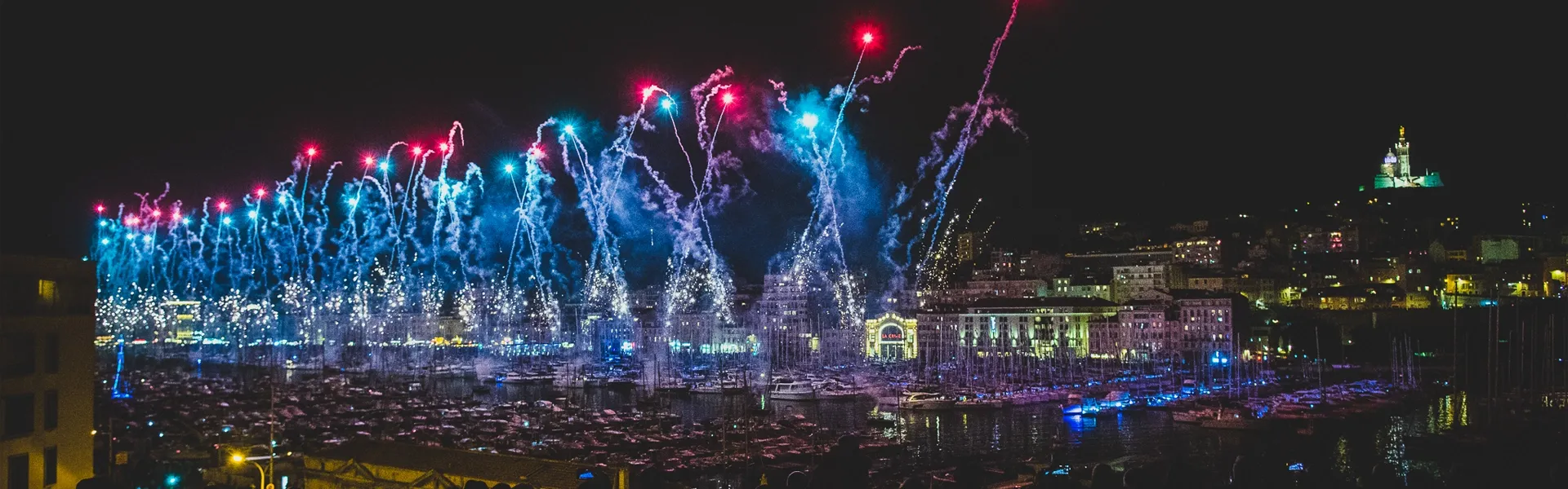 Rendez-vous tout autour du Vieux-Port pour un magnifique spectacle de drones et feux d'artifice qui illuminera le ciel marseillais !