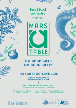 Avec cette deuxième édition du festival “Mars à Table” du 4 au 18 octobre 2025, la Ville de Marseille et l’Office de Tourisme, des Loisirs et des Congrès encouragent les visiteurs et les Marseillaises et les Marseillais à (re)découvrir la gastronomie locale et méditerranéenne, en partenariat avec les restaurateurs marseillais.