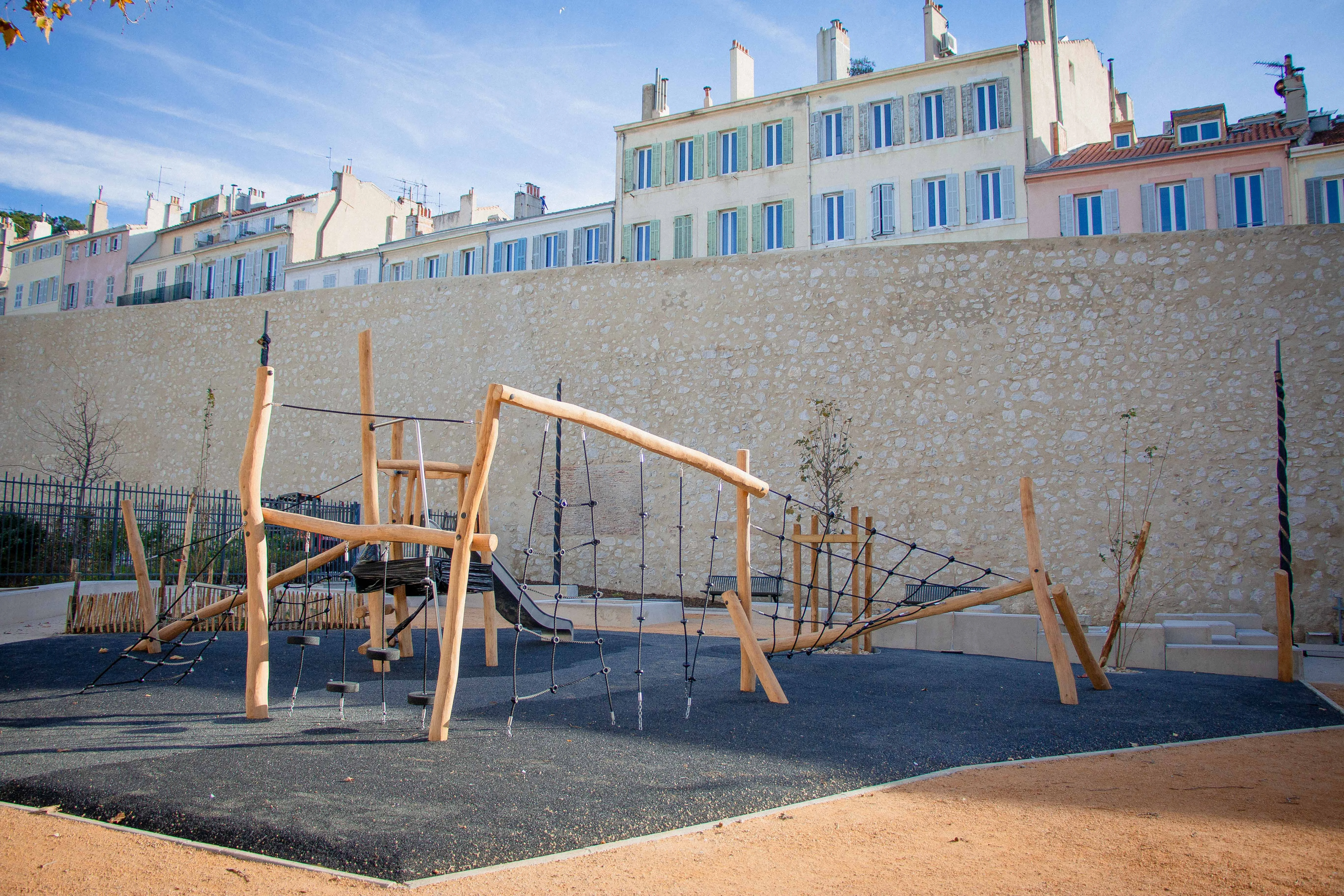 Situé entre le rempart construit au 17e siècle par Louis XIV, le boulevard de la Corderie, la rue d’Endoume et l’emprise de la carrière antique de la Corderie, le jardin Saint-Nicolas (7e arrondissement) a ouvert le samedi 13 décembre 2025, après sept mois de travaux et plusieurs années de concertation avec l’État et la co-propriété des Loges sur le devenir des vestiges, qui jouxtent le jardin.