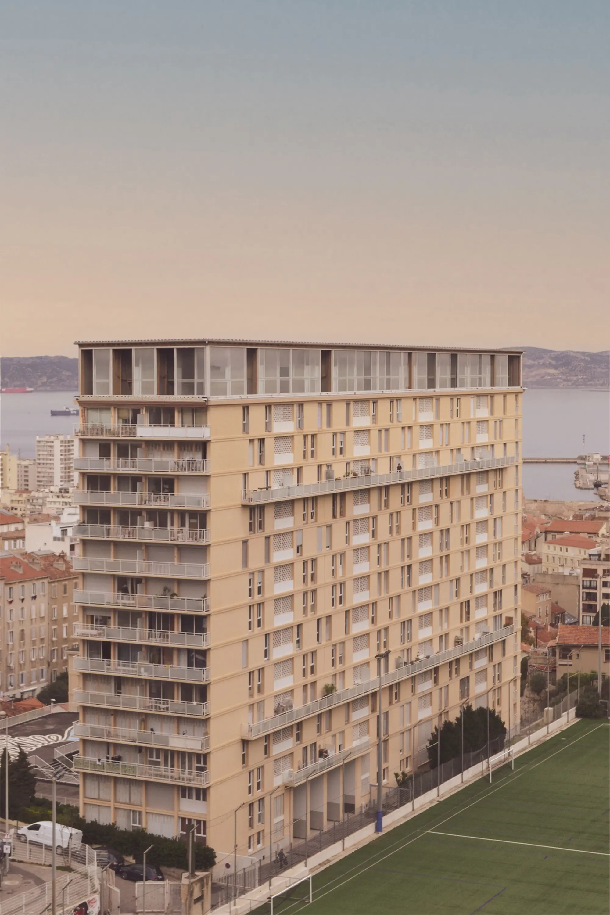 Révéler le foncier invisible des toits-terrasses marseillais pour créer une nouvelle strate habitée, sans détruire ni surélever massivement. Des centaines de toits techniques peuvent accueillir des habitats légers, participatifs et abordables, transformant les souches de ventilations en logements atypiques. Un modèle de densification douce qui finance la rénovation énergétique des copropriétés tout en créant des logements accessibles. Faire avec le «déjà là» pour réinventer le ciel marseillais.
