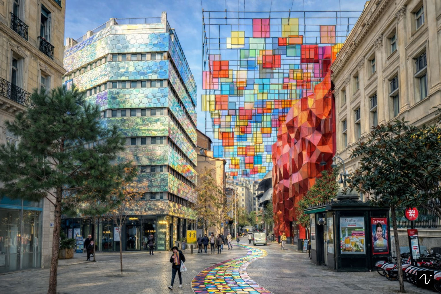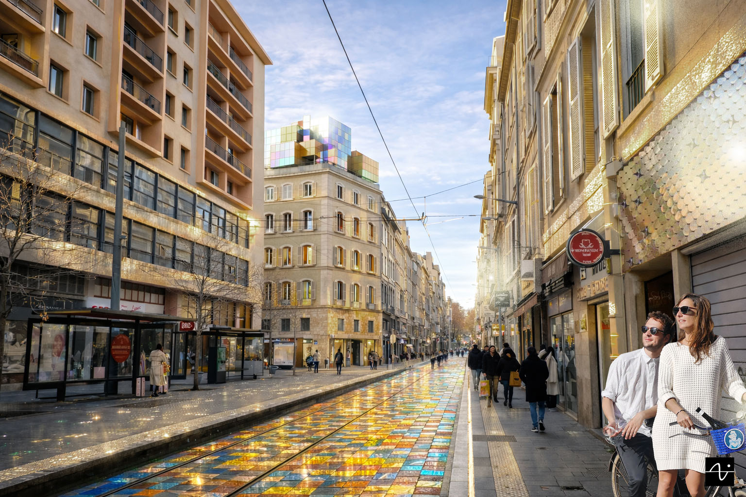 Le projet -Brille Marseille ! Brille comme un diamant !- propose une stratégie de transformation du paysage urbain fondée sur l’usage de la céramique, de la lumière et de la couleur, afin de révéler la qualité architecturale et paysagère de la ville. En s’appuyant sur la présence constante du soleil, il s’agit de faire de la matière un vecteur de perception, capable de transformer l’image des lieux, d’affirmer l’identité des quartiers et de produire une nouvelle lecture sensible de l’espace urbain. Par des interventions ciblées et reproductibles, le projet ambitionne de renforcer l’attractivité culturelle et touristique de Marseille tout en améliorant durablement la qualité perçue de son environnement bâti.