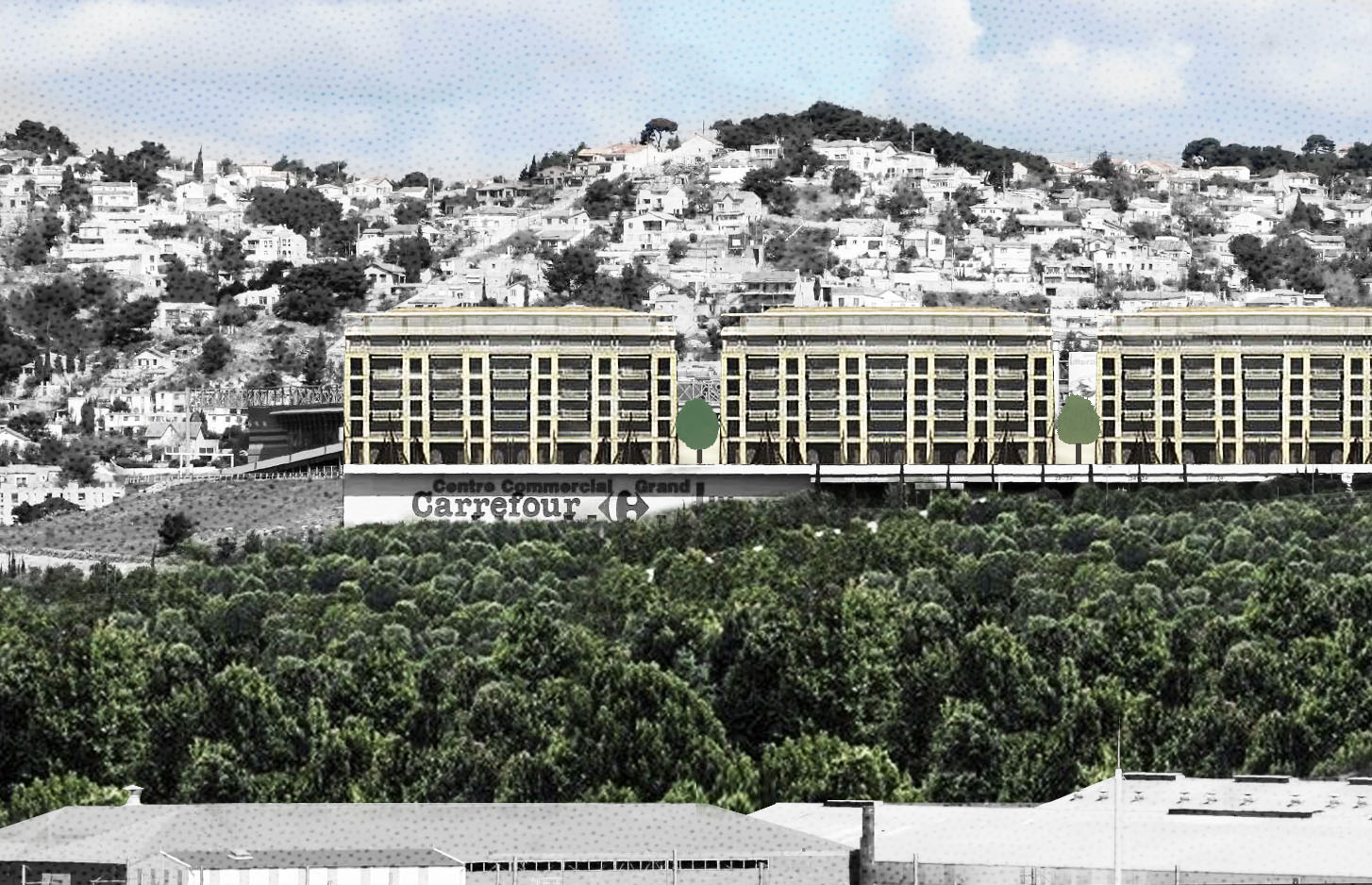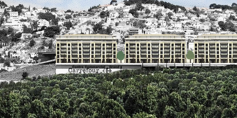 Marseille est une ville de centres commerciaux et de vastes nappes de stationnement en surface ou en superstructure peuvent être utilisées. Du Nord au Sud en passant par l’Est, cet archipel est le deuxième levier de création de logements tout en maintenant les espaces automobiles nécessaires à leur fonctionnement. Grand Littoral, Bonneveine, le Merlan, la Valentine, il est temps de rompre avec le caractère mono fonctionnel de ces lieux sous-estimés et souvent implantés dans des sites remarquables en requalifiant ces zones de chalandises tout en faisant la ville sur la ville.