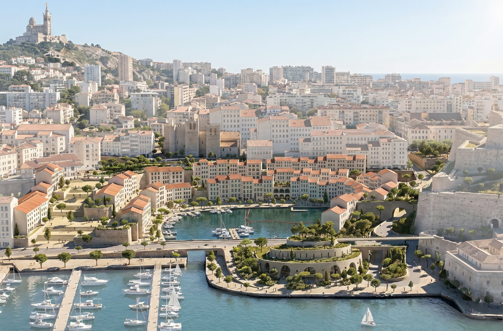 Le bassin de Carénage devient ainsi un port intérieur apaisé, un lieu de vie, de passage et de contemplation. Interface réconciliée entre la ville et la mer, il prolonge le récit millénaire de Marseille tout en inscrivant le site dans une dynamique contemporaine de reconquête des fronts d’eau. Plus qu’un aménagement, le projet propose une réparation urbaine, où l’histoire, la topographie et les usages quoti