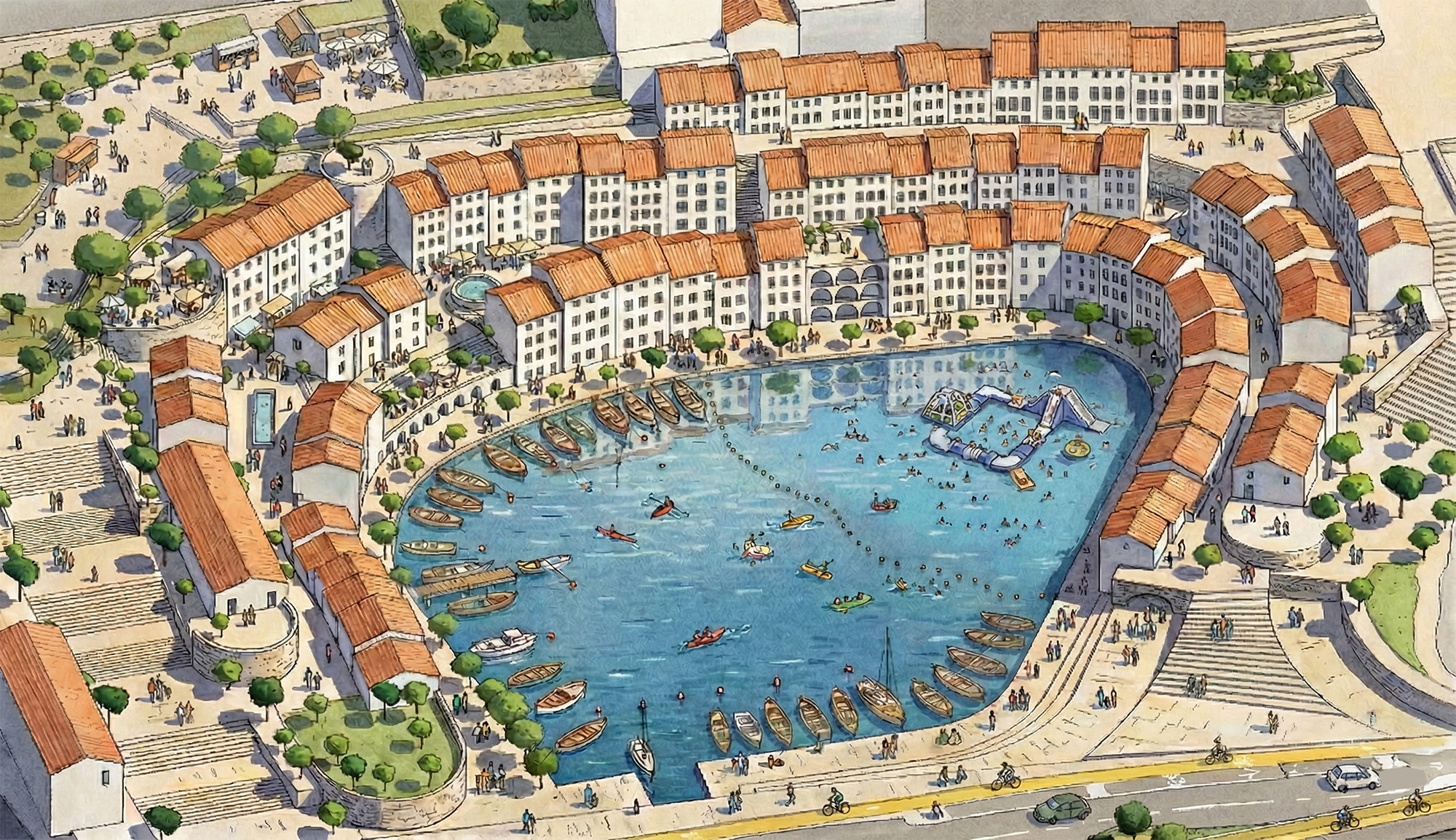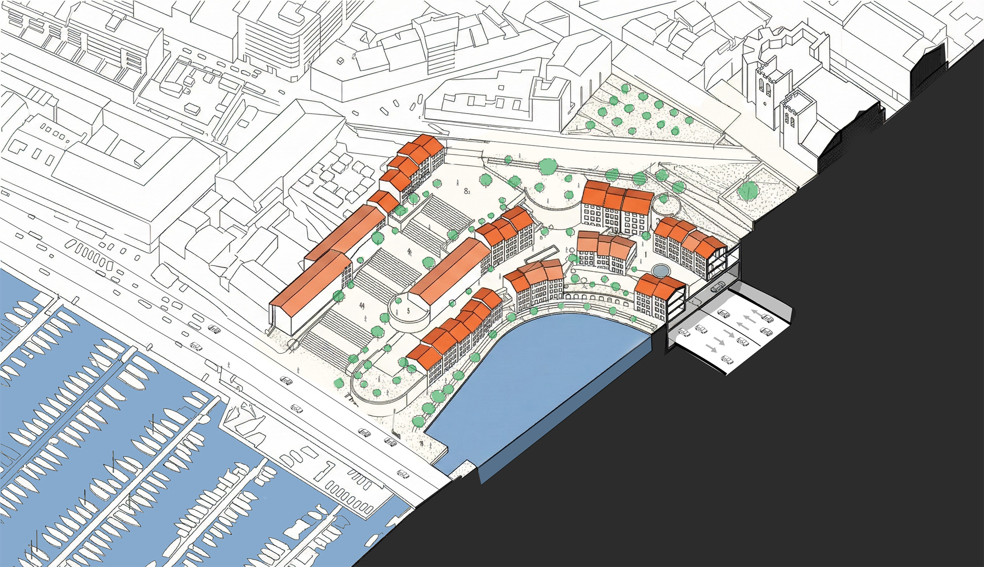 Le bassin du Carénage a longtemps été un port de commerce majeur avant de devenir, après la Seconde Guerre mondiale et le creusement du tunnel dans les années 1960, un port de plaisance bordé d’infrastructures autoroutières. Aujourd’hui caractérisé comme une rupture urbaine et paysagère, il doit être réintégré au tissu vivant de Marseille. Dans la continuité des réflexions d’urbanistes locaux et nationaux, notre proposition vise à reconnecter la ville. Nous proposons de remodeler la colline originelle du Lacydon en un vallon habité, mêlant logements à l’échelle humaine, et espaces publics ouverts sur la mer, avec promenade balnéaire, accès à la baignade et belvédères. Dans l’esprit des grandes reconquêtes urbaines européennes, le vallon du Carénage deviendrait un lieu de vie, de passage et de contemplation, réconciliant Marseille avec son histoire et son littoral.