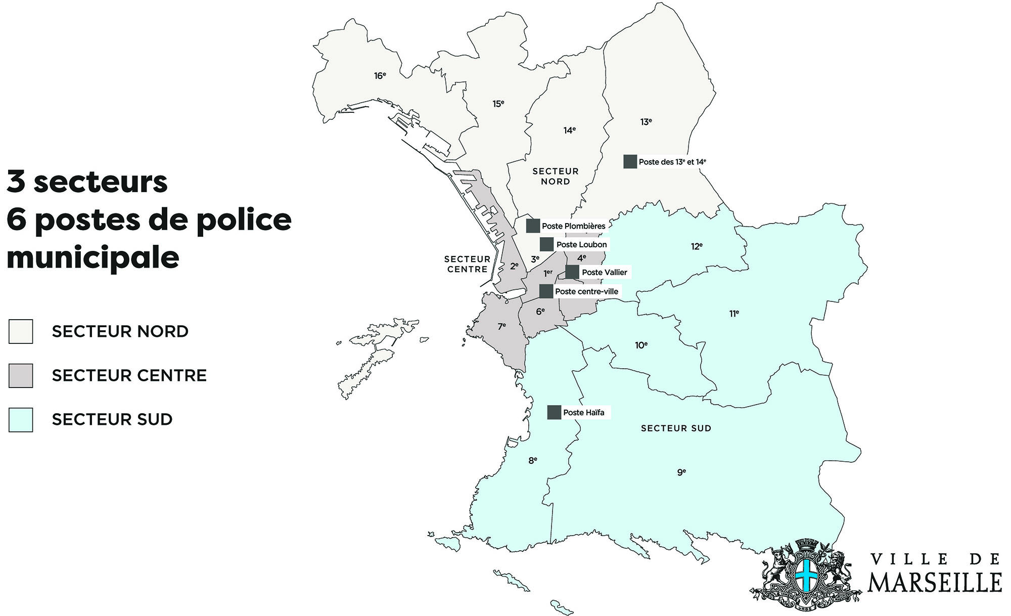 Pour être au plus près du terrain et couvrir les 240 km2 de la commune de Marseille, la Ville est présente au quotidien. La sectorisation de la Police municipale permet de s’adapter aux spécificités des quartiers marseillais, et vise à rendre plus présente la Police municipale dans chaque noyau villageois et pour chaque événement.