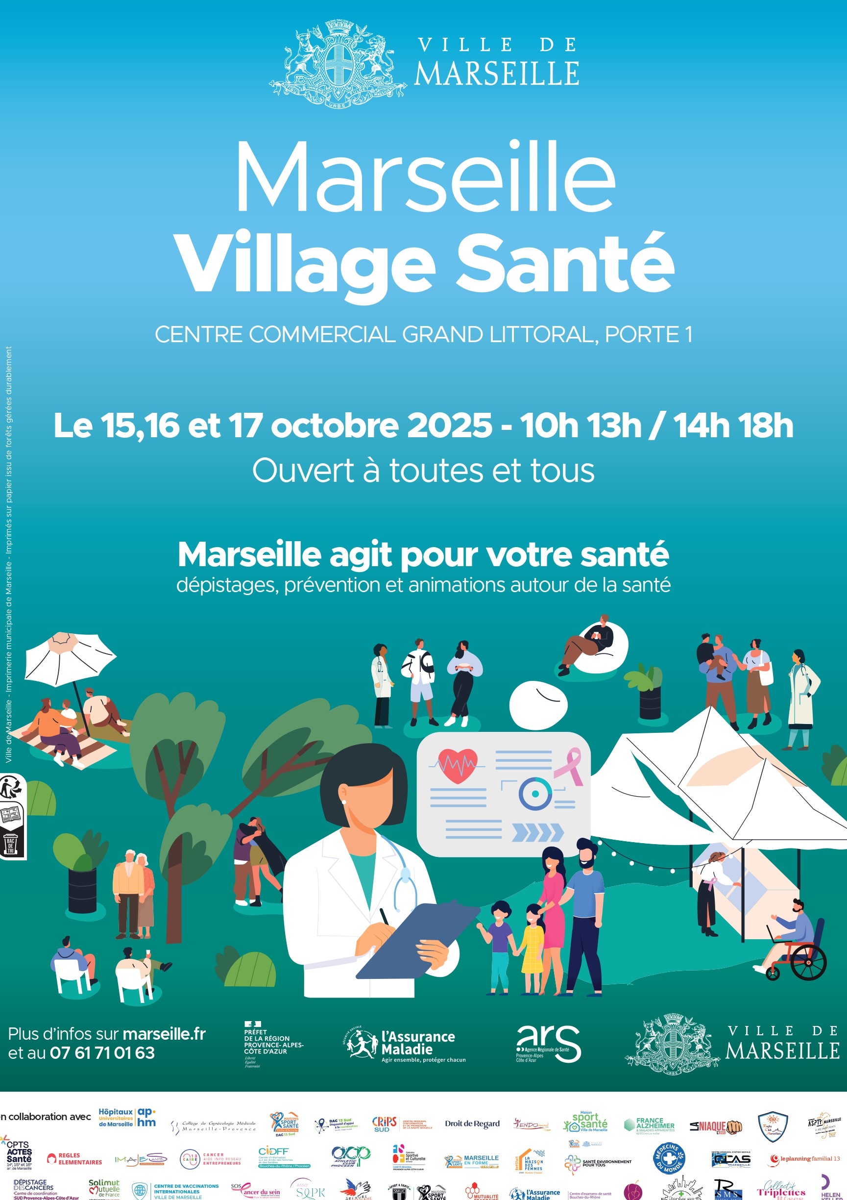 En collaboration avec l'Agence Régionale de Santé, la Caisse Primaire d'Assurance Maladie, la Préfecture déléguée à l'égalité des chances et de nombreuses partenaires, la Ville de Marseille et "Banlieues Santé" propose un parcours complet pour prendre soin de sa santé avec le "Marseille Village Santé", se déplaçant au plus près des Marseillaises et des Marseillais.
